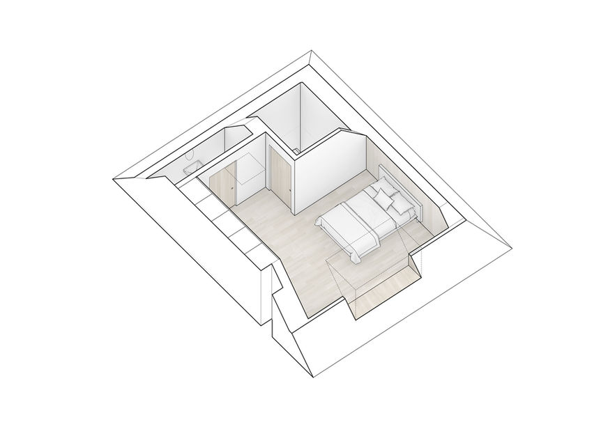 The proposal addresses the historical context of the wider area within the masterplan by Raymond Unwin. Consent is required from both the Hampstead Garden Suburb Trust and Borough of Barnet. The external interventions are sensitive and works with the recommendations of the HGS Planning Guide, whilst the loft interior takes on a more relaxed and playful expression in relation to the abstract nature of the attic space.